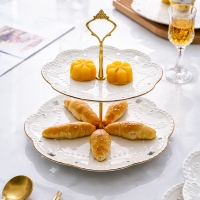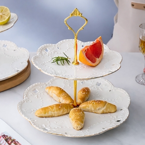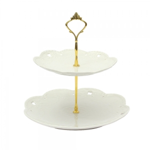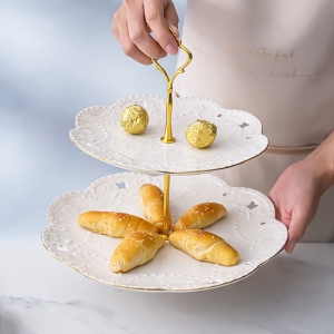 [쿠킹홈] 플레르 2단 도자기 디저트 트레이(골드) (마케팅전용)
