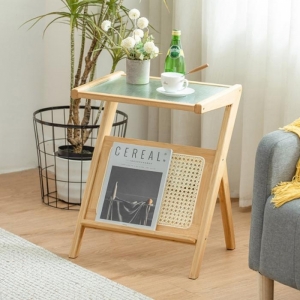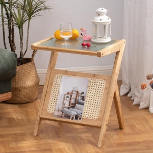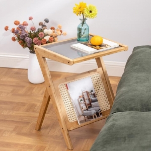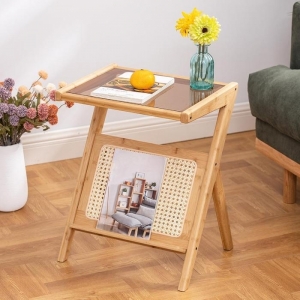 홈인리빙 유리 사이드테이블(50cm) (내추럴)