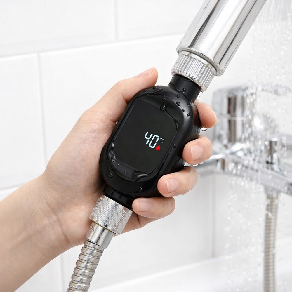 샤워 중에는 현재 온도를 실시간으로 확인할 수 있습니다.