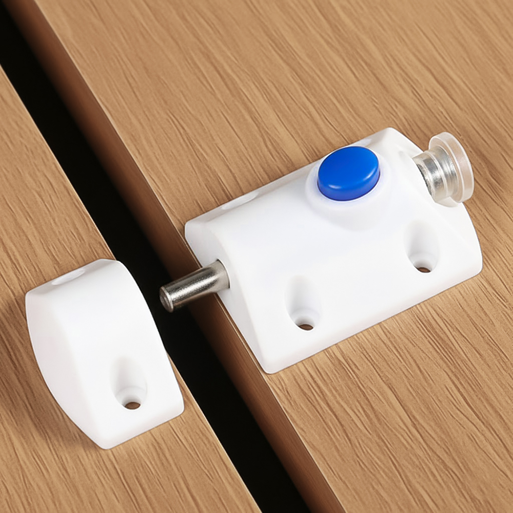 원터치 잠금장치 가구 래치 가구 문에 설치해 문을 간편하게 고정할 수 있습니다. 수납장 / 캐비닛 / 반려동물 펜스 등의 보조 잠금 장치로도 활용할 수 있습니다. * 구성 : (래치+아대 1개, 나사 6개) x 5개 |