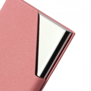 성공적인 비즈니스를 위한 명함케이스 세련된 스틸 프레임과 가죽커버. 얼굴이 될 명함을 특별하고도 품격있게 보관해줍니다. 자석 내장으로 여닫기가 간편하며, 슬림한 디자인으로 휴대하기 좋습니다. - 보관매수 : 약 20매 (명함 두께에 따라 달라질 수 있습니다.) |