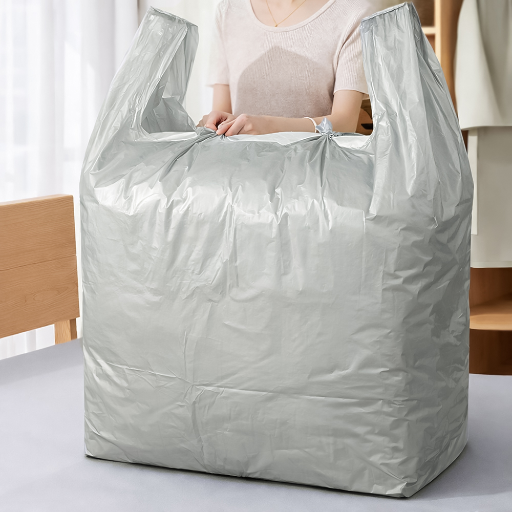 200L 초대형 비닐봉투 이불 · 패딩 · 겨울옷 한 번에 담아도 넉넉한 대용량 사이즈 부피 큰 짐, 이제 더 이상 고민하지 마세요. 초대형 비닐봉투, 이런 게 좋습니다! ① 압도적인 사이즈, 약 200L 대용량 ㅁ 퀸 사이즈 이불 1~2채 ㅁ 겨울옷 패딩 6~8벌 ㅁ 담요·쿠션 다량 수납 가능 ※ 내용물의 두께 및 수납 방식에 따라 수납 양은 차이가 있을 수 있습니다. ② 빠르고 실용적인 수납 박스처럼 접을 필요도, 압축팩처럼 기계도 필요 없어요. 봉투에 담고 묶기만 하면 끝! ㅁ 이사, 대청소 짐 정리 ㅁ 계절 옷 교체 수납 ㅁ 이불, 쿠션, 담요 보관 ㅁ 업소, 행사용 대형 수납 ③ 튼튼한 PE 소재 ㅁ 쉽게 찢어지지 않는 내구성 ㅁ 무거운 물건도 안정적으로 수납 ㅁ 재사용 가능한 실용적인 비닐봉투 ▶ 제품 구성 안내 사이즈 : 82cmx125cm 용량 : 약 200L 구성 : 10매 색상 : 실버 |