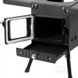 난방, 불멍, 요리까지 한번에~ 캠핑에서 빠질 수 없는 필수템, 화목 난로! #바베큐 #꼬치 #볶음요리 #튀김 - 강력 화로! 냄새 연기는 적게, 화력은 더 강하게~ 그릴을 올려 불맛나는 구이 요리를 하거나 상판에 냄비, 프라이팬을 올려 취사 가능! - 열효율 높은 스틸 화목난로 열전도율이 좋은 철 소재로 제작되어 연료 비용은 절감하고, 난방 효과는 UP! 불꽃모양 통풍구로 화력 UP~ 숯, 나무, 연료 등이 원활하게 연소됩니다. - 감성 불멍, 내열유리창 장작타는 소리를 들으며 불멍을 즐기기에 최적화! 700℃까지 견디는 내열유리를 적용하여 안전하며, 불세기와 연료 잔량을 확인하기 좋습니다. - 사이드 선반 선반을 펼치면 각종 재료, 조리도구 등을 편리하게 사용 - 스텐 난로 연통 장작이 타는 순간 발생하는 연기를 원활하게 배출! 탈착 가능한 형태로 원하는 높이로 조절하여 사용할 수 있습니다. - 통풍구 조절 손잡이 공기 통풍구로 적절한 공기량 조절 가능 (오른쪽 - OPEN / 왼쪽 - CLOSE) - 고온을 견디는 단열 로프 그을름, 연기, 열기가 새어 나오지 않게 차단 - 연료 투입구 / 잠금장치 재, 불씨 등이 날릴 걱정 없이 안전하게 사용 OK~ - 분리형 재받침대 바닥에 재가 떨어지지 않아 깔끔하며 남은 재를 처리할 때 편리합니다. - 간편 설치 양쪽 선반과 접혀있는 다리를 펼쳐주면 설치 끝! - 접이식 휴대 양쪽 선반을 중앙으로 모아주면 손잡이로 사용~ 이동이 편리하고 컴팩트한 사이즈로 보관하기 좋습니다. - 주의사항 * 화목난로 사용시 반드시 장갑을 착용해주세요. * 폭발 및 화재의 위험이 있으므로 난로 주변에 인화성 물질을 두지마세요. * 연소시 난로 본체와 연통이 뜨거워 화상의 위험이 있으니 주의하세요. * 실내에서 사용시 주기적으로 환기를 시켜주세요. - 구성: 화목난로, 부지깽이, 십자드라이버, 장갑 |