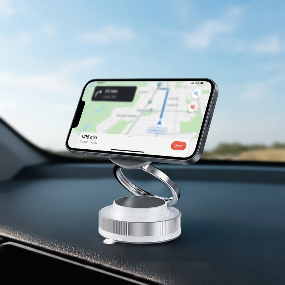 맥세이프에 진공을 더하다! 강력 흡착 맥세이프 거치대 운전 중에도 흔들림 없이, 원하는 각도에서 안정적으로 고정되는 맥세이프 거치대입니다. ▶POINT 1. 강력 진공 흡착 방식 다이얼을 돌리는 순간, 강력한 진공 흡착력으로 단단하게 고정됩니다. - 매끄러운 표면에 강력 밀착 - 탈착 후에도 자국 걱정 NO - 차량 주행 중 흔들림 최소화 ※ 대시보드, 전면 유리, 책상, 유리창 등 평평한 표면 어디든 OK! - 사용 방법 1. 설치면의 먼지와 이물질을 깨끗이 제거하세요. 2. 바닥 보호필름을 제거합니다. 3. 거치대를 강하게 눌러 밀착한 뒤, 다이얼을 OFF 방향으로 돌려주세요. (OFF방향: 흡착 / ON방향: 해제) * TIP. 표면이 거칠거나 굴곡진 곳에서는 동봉된 보조 바닥판을 활용해 설치할 수 있습니다.