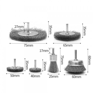 #연마 #녹제거 #이물질제거 #샌딩작업 전동드릴용 와이어 브러쉬 6종 세트 (1/4 라운드 생크 타입) ◀ 제품 특징 - 내마모성 강한 탄소강 와이어 재질 - 찌든 녹, 페인트, 이물질, 녹슨 표면, 용접 흔적 제거용 - 전동드릴 호환: 1/4형 라운드 생크 타입 - 컵형/ 휠형/ 펜형 구성으로 좁은 틈새부터 넓은 면적까지 작업 가능 - 금속/ 목재/ 철재 등 다양한 소재의 표면 연마 작업에 최적화 * 구성: 75mm 휠형, 65mm 휠형, 50mm 휠형, 40mm 휠형, 25mm 펜형, 60mm 컵형 |