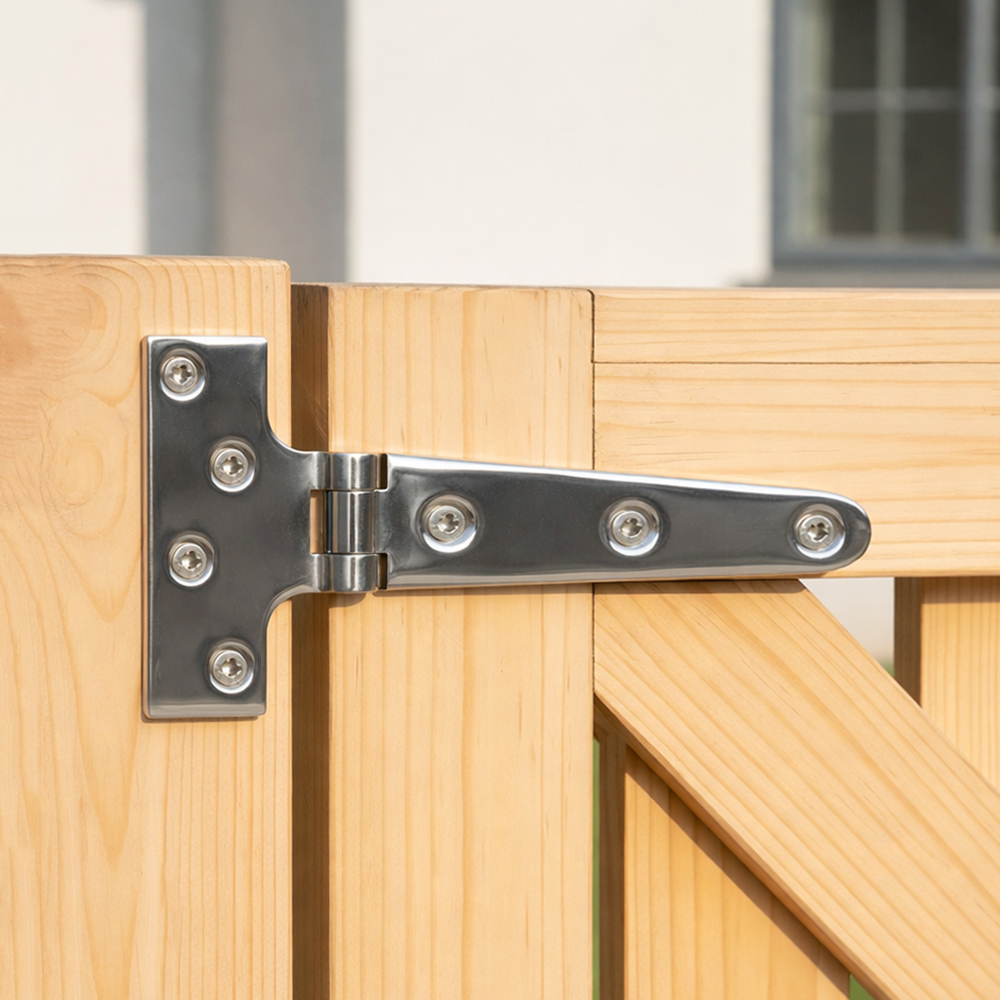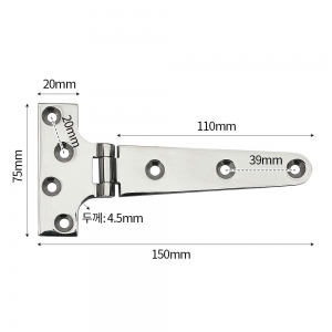 316 스테인리스 T형 경첩 #실외 #산업 #해양 #고하중 경첩 ▶ 고하중 T형 구조 프레임에 고정되는 플레이트와 문 안쪽까지 길게 고정되는 스트랩 구조 하중을 넓게 분산시켜 무거운 문도 견고하게 지지합니다. ▶ 염분과 습기에 강한 SUS316 스텐 장기간 사용해도 변형이 적으며, 실외는 물론 해안·선박 환경에서도 안정적인 내구성을 제공합니다. ▶ 이런 환경에 추천합니다 - 대문, 창고문, 울타리문 - 선박 / 요트의 해치 및 수납용 경첩 - 산업 현장 및 고하중 구조물 ▶ 제품 안내 구성 : 경첩 1개, 나사 7개 크기 : 길이 150mm x 높이 70mm 문 열림 각도 : 270˚ 소재 : 316 스테인리스(미러 폴리싱) |
