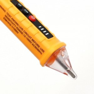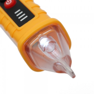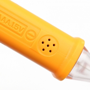 눈에 보이지 않는 전기, 안전하게 확인하기! 직접 대지 않아 안전한~ 비접촉 검전기 - 감전 위험 Down~ 비접촉 검전기 확인이 필요한 부분에 센서를 대거나 가까이 했을 때 전기가 감지되면, 신호 강도 표시등과 함께 경고음이 울립니다 - 상황에 맞게 확인하는 감도 조절 버튼 "S" 측정 환경이나 거리 차이로 반응이 약하거나 애매할 때 감도 조절로 보다 편리하게 확인할 수 있습니다. "S"버튼으로 단계 전환 : 고감도 ↔ 저감도 - LED 라이트 조명 어두운 곳에서 측정 부분과 주변을 확인할 때 유용합니다. - 자동 전원 끄기 검전기가 5분 동안 작동하지 않고, AC 전압이 감지되지 않으면 자동으로 꺼집니다. - 배터리 부족 알림 전원 표시등이 3회 깜박이고, 경고음이 울린 후 꺼집니다. - 휴대하기 좋은 포켓 클립 * 제품 사양 주파수 : 50Hz~60Hz 전원 : AAA 건전지 2개(미포함) * 배터리 교체 방법 버튼을 누른 상태에서 배터리 캡을 열어 건전지를 교체하세요 |