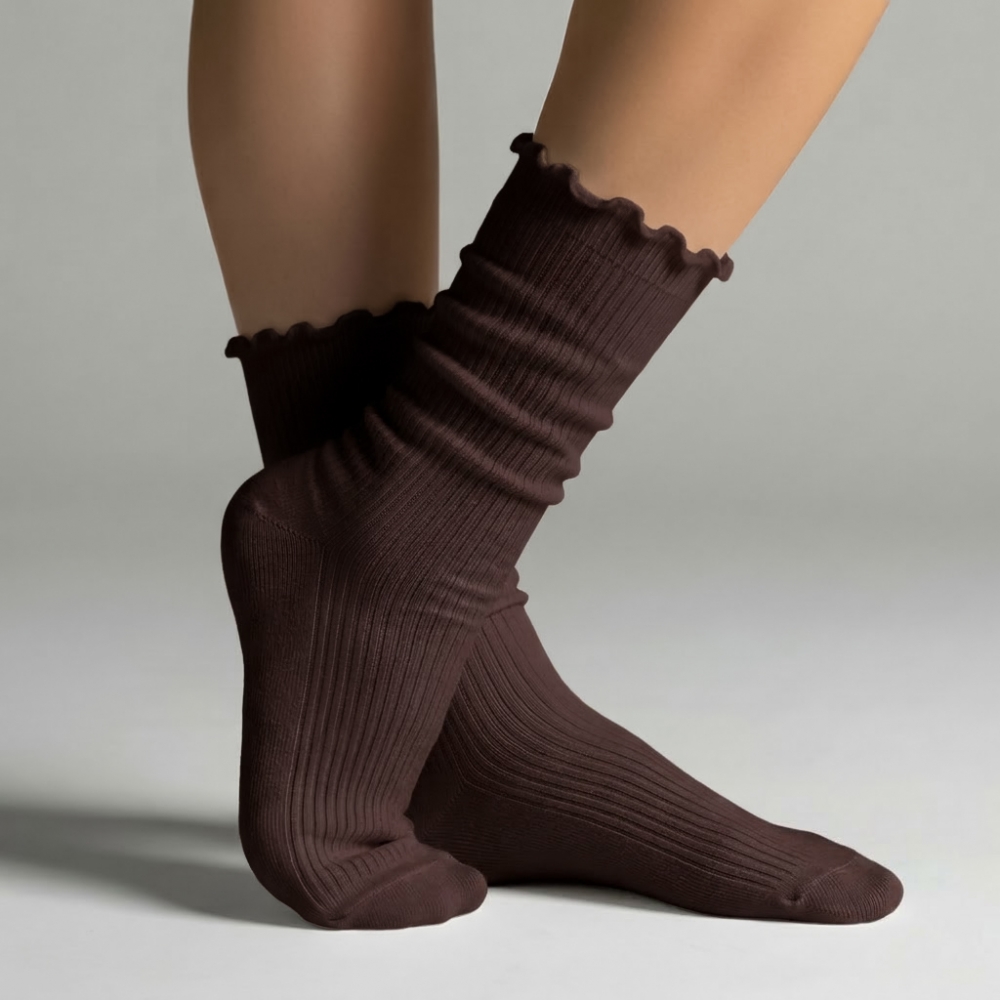 단정하게, 사랑스럽게 골지 프릴 삭스 - 러블리 포인트, 프릴 디자인 매일 신어도 과하지 않은 프릴 디테일 - 핏을 완성하는 두 가지 골지 짜임 발목의 실루엣을 살려주는 촘촘한 골지와 발등을 안정감 있게 잡아주는 탄탄한 골지 - 어디에나 자연스럽게 과하지 않게 포인트를 더해주는 데일리 골지 삭스 |
