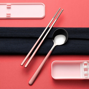 곡선라인이 부드러운 숟가락, 미끄럼방지 디자인으로 음식물을 집기 편리한 젓가락 시선을 사로잡는 손잡이 컬러포인트 편안하게 사용하는 휴대용 수저세트. 위생적인 304스테인리스 소재로 냄새 배김이 적고 세균증식을 억제하며, 고정홈이 있는 케이스로 달그락거림 없이 휴대하세요~ - 구성품 : 수저(304스텐), 젓가락(304스텐), 케이스(PP) |