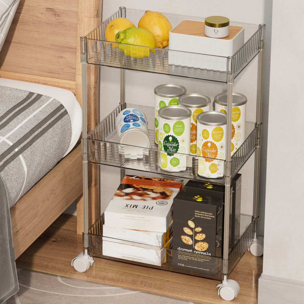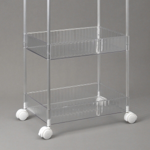 언제 어디서나 간편하게~ 공간 활용에 탁월한 이동식 선반 다양한 공간에 활용 만점 여러 가지 물건을 두기 좋은 선반으로 거실, 주방, 베란다, 다용도실 어디서든 OK! 가볍고 튼튼한 플라스틱 투명 선반 깔끔한 투명 선반으로 한눈에 확인 OK 탈부착식 바퀴 바퀴를 탈부착할 수 있어 고정식 또는 이동식으로 사용 가능! - 견고한 알루미늄 프레임 - 간편하게 걸 수 있는 다용도 고리 - 360도 자유롭게 회전하는 이동바퀴 - 고정할 수 있는 브레이크 바퀴 장착 * 구성: 선반3p, 바퀴 2p, 브레이크 바퀴 2p, 바퀴고정캡 4p 걸이 고리캡 2p, 마감캡 4p, 프레임 8p * 간단한 조립이 필요한 상품입니다. |