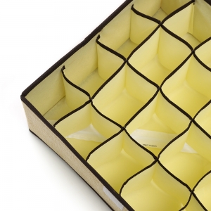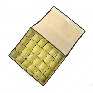 센스 있는 수납공간~ 속옷 정리함. 속옷, 양말, 넥타이, 벨트, 수건 등 각종 의류 및 생활 속 작은 소품들을 칸칸 구분하여 깔끔하게 정리하고 한눈에 물건을 찾을 수 있어 효율적입니다. 먼지가 들어가는 것을 막아주는 벨크로(찍찍이) 덮개와 간편 접이식으로 공간 활용 및 서랍 옷장 정리의 필수품! 제품 특성상 임의배송 상품입니다. 단, 소량주문시 요청사항에 기재해주시면 최대한 맞춰드리겠습니다. 맞추기 어려울시 연락드리겠습니다. |