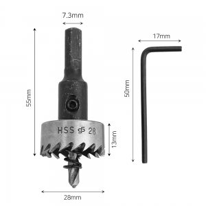철판류 천공! 빠른 드릴링! 철공용 HSS 홀커터 홀쏘(직경 28mm) 특징 - HSS(High Speed Steel) 하이스강 소재 - 135도 드릴링 팁설계! 정확한 위치 및 고속 타공 가능 - 강력한 회전에도 견뎌내는 뛰어난 내마모성 - 우수한 절삭력으로 정확한 홀컷팅 - 스프링 장착으로 순간밀림방지 용도 함석판, 아연판, 주철판, 알루미늄판, 스테인리스 스틸 등 적용 가능 기기 핸드드릴/ 충전드릴/ 드릴링머신 * 7.3mm 육각 생크로 전기드릴 및 드릴머신에 호환됩니다. 사용방법 1. 뚫고자 하는 철판에 수직으로 위치합니다. 2. 구멍뚫을 곳의 중심을 드릴로 타공합니다. 중심이 뚫렸으면 수직을 유지하며 천천히 속도를 높여가며 구멍을 만들어갑니다. 3. 구멍 사이즈가 클수록 드릴 회전속도를 줄여 저속으로 진행하기 바랍니다. 4. 구멍뚫기 작업 완료 * 제품 구성: 홀쏘, 육각렌치 |