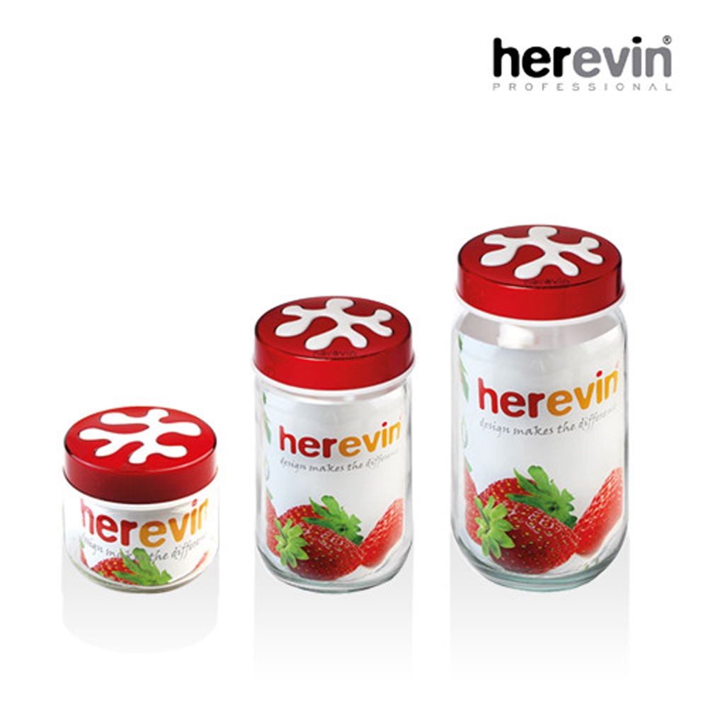 [튀르키예 헤르빈] 퍼즐 원형 유리 밀폐용기 3종 세트 (400 700 1000ml) (레드)
