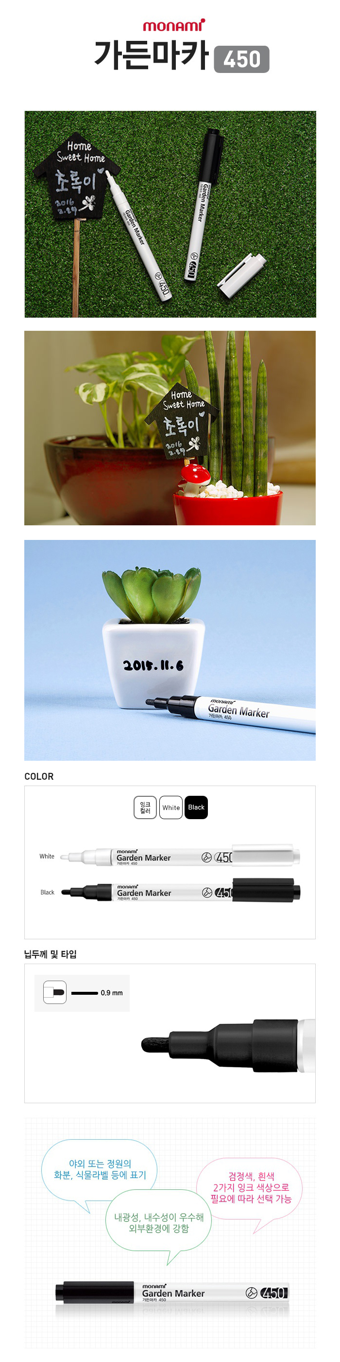 야외 또는 정원의 화분, 식물 라벨 등에 표기 내광성, 내수성이 우수해 외부환경에 강한 제품.