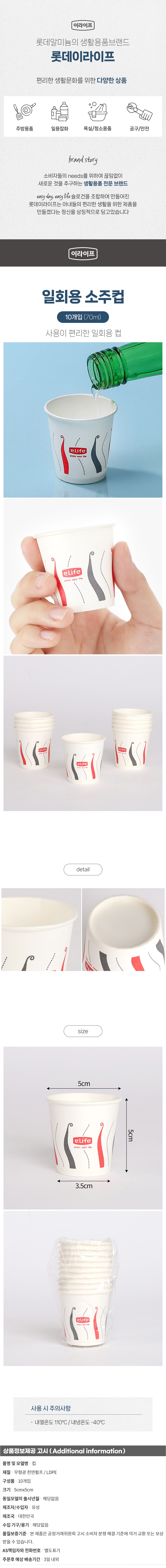 일회용 소주컵 70ml / 10개입 사용이 편리한 일회용 컵 * 내열온도 110℃ / 내냉온도 -40℃ |