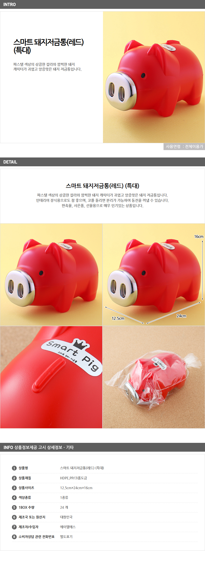 파스텔 색상의 상큼한 칼라와 깜찍한 돼지 캐릭터가 귀엽고 앙증맞은 돼지 저금통입니다. 인테리어 장식용으로도 참 좋으며, 코를 돌리면 분리가 가능하여 동전을 꺼낼 수 있습니다. 판촉물, 사은품, 선물용으로 매우 인기있는 상품입니다. |