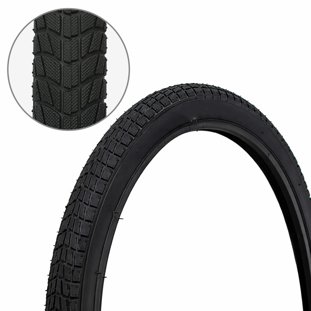 안정적인 주행의 기본 자전거 타이어 16 x 1.75 규격 타이어 내구성과 접지력을 모두 고려한 타이어로 더 안전하고 편안한 라이딩을 경험해 보세요. - 내구성이 뛰어난 고탄성 고무 소재 - 노면과의 접지력을 높인 트레드 패턴 * 사이즈 선택 가이드 현재 사용 중인 타이어 측면에 적힌 규격을 확인하세요! [ 타이어 사이즈 표기법 3가지 ] 1> INCH - 인치 표기: 12 x 1.75 앞 숫자 12 → 타이어 외경(인치) 뒤 숫자 1.75 → 타이어 폭(인치) 2> FRENCH - mm 표기: 700 x 25C 앞 숫자 700 → 타이어 외경(mm) 뒤 숫자 25 → 타이어 폭(mm) 3> ETRTO - mm 표기: 25-622 앞 숫자 25 → 타이어 폭(mm) 뒤 숫자 622 → 휠(림)의 내경(mm) ** ETRTO: 유럽 타이어 및 림 기술 기구(European Tyre Rim Technical Organisation)**의 약자 * 타이어 사이즈표