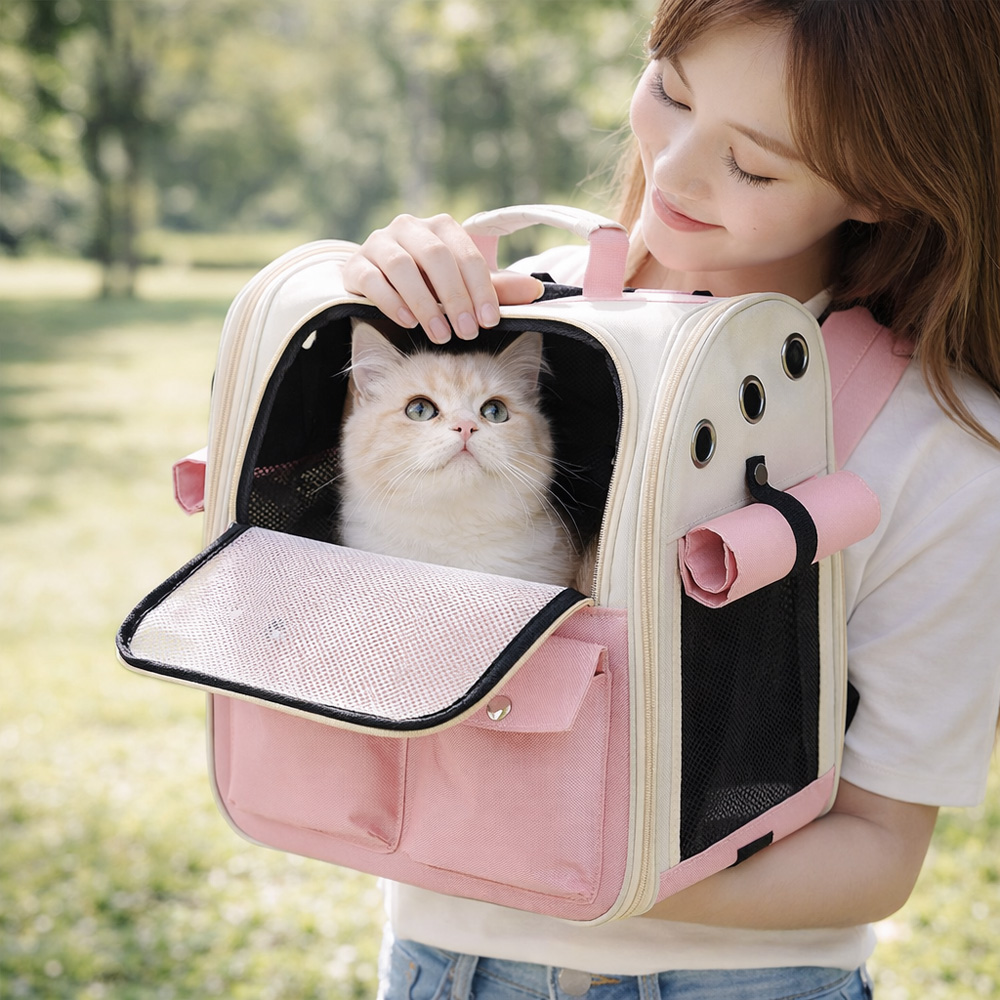 너도, 나도 편한 반려동물 백팩 이동 가방 반려인에게는 양손의 자유를, 반려동물에게는 자신만의 공간으로 편안하게~ Point 01_ 외출 시 백팩 하나로 짐 걱정 없이! 백팩 이동 가방 하나로 외출 준비 끝~ 센스 있는 수납공간으로 별도의 가방이 필요하지 않아요. * 전면 포켓 2개 / 측면 메시 포켓 1개 Point 02_ 도톰 어깨 쿠션 & 등판 에어메시 도톰하고 넓은 어깨 패드로 무게를 분산시켜 피로도 DOWN~ 촘촘한 등판 에어메시 소재로 장시간 착용에도 편하고 쾌적하게! Point 03_ 바람 솔~솔 메시 도어 통기성과 투시성이 우수! 여닫기가 편리한 지퍼방식의 메시 도어로 반려견이 답답하지 않도록 개방이 가능합니다. Point 04_ 양측면 6개의 에어홀 양측면 6개의 에어 홀로 내부 공기 순환이 OK! 시원하고 쾌적하게~ 답답함 없이 편안하게 이동 Point 05_ 양측면 메시창 + 패브릭 덮개 찬 바람이 불거나 반려동물이 불안해할 때는 덮개를 내리고~ 답답함을 싫어하거나 공기 순환이 필요할 때는 돌돌~ 말아 올려주세요! Point 06_ 완전히 개방되는 지퍼 방식 가방 전면을 오픈할 수 있어 반려동물이 편하게 드나들 수 있어요. Point 07_ 내부 하네스 안전고리 하네스에 연결 가능한 안전고리로 이탈 방지 및 혹시 모를 돌발 사고를 예방해 줍니다. Point 08_ 내구성이 뛰어난 옥스퍼드 원단 Point 09_ 부드러운 촉감의 바닥 패드 Point 10_ 이동이 편리한 탑 핸들 Point 11_ 접이식으로 슬림하게 보관 가능 * 구성 : 이동 가방, 바닥 패드 * 6kg 이하 반려동물이 사용하기 적합한 상품입니다. |