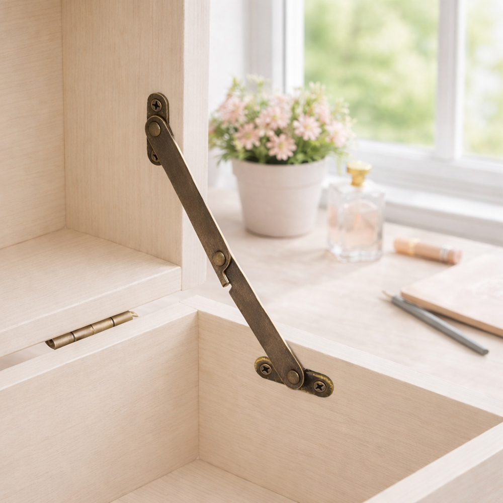 수납함 / 박스 / 가구 열린 상태로 문을 고정해 주는 접이식 지지대 경첩 * 제품 사양 소재 : 스틸 색상 : 빈티지 브론즈 구성 : 경첩 10개 + 나사 40개 |