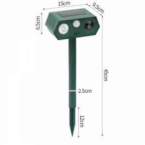 소리와 빛으로 지키는 안심 Zone! 태양광 초음파 동물 퇴치기 원치 않는 동물의 침입으로 스트레스를 받고 계신가요? 배설물 테러, 농작물 피해, 소음 스트레스까지... 고양이, 개, 새, 쥐, 뱀 등 각종 야생동물의 접근을 초음파 + 빛으로 간단하고 효과적으로 차단하세요! 제품 특징 ▶ 100% 태양광 자동 충전 전기료 Zero! 전선도, 배터리 교체도 필요 없습니다. 낮 동안 태양광 패널로 자동 충전되어, 24시간 밤낮없이 지속적으로 작동합니다. ▶ 스마트 자동 감지, 적외선 센서 동물이 감지 범위에 들어오면 즉시 자동 작동! - 최대 감지 거리: 약 12m - 감지 각도: 120도 ▶ 초음파 + 고휘도 LED, 이중 퇴치 시스템 ①초음파 방출: 동물에게 불쾌감을 주는 초음파를 방출해 접근을 자연스럽게 차단합니다. * 초음파 강도 조절 가능 - 오른쪽 모드: 1000Hz - 왼쪽 모드: 400Hz ②고휘도 LED: 야간에는 강력한 번쩍임으로 시각적 자극을 주어 퇴치 효과를 극대화합니다. ③자동 작동 프로세스: 움직임 감지 → 자동 ON → 초음파 & LED 작동(30초) → 자동 OFF ▶ 생활 방수 비, 눈, 이슬에도 안심하고 사용 가능 정원, 텃밭, 캠핑장, 주차장 등 어디든 설치 OK ▶ 내구성 강한 ABS 소재 ▶ 간편한 2WAY 설치 방식 지면 말뚝형: 말뚝을 연결해 잔디, 흙, 화단에 꽂기만 하면 설치 완료. 벽면 고정형: 뒷면 홈을 이용해 벽, 울타리, 기둥 등에 설치. (나사 미포함) ▶ 제품 사양