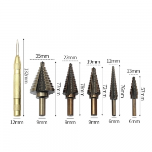 깔끔한 타공 작업의 완성! 스텝드릴 비트 5종+센터 펀치세트 빠른 작업 | 정확한 직경 가공 | 작업 효율 UP ■ 하나의 비트로 다양한 사이즈 작업 계단식 구조(스텝형 디자인)로 작은 구멍부터 큰 구멍까지 한 번에 작업이 가능합니다. 비트를 여러 번 교체할 필요 없이 원하는 지점에서 멈추기만 하면 정확한 사이즈 타공 완성! ■ 선명한 사이즈 각인 표시 각 단계별 사이즈가 비트에 레이저 각인되어 작업 중에도 쉽게 확인 가능합니다. ■ 강력한 절삭력 & 내구성 고강도 베어링강 GCr15 사용 철판, 알루미늄, 동판, 플라스틱, 목재 등 다양한 소재에 안정적인 타공이 가능합니다. ■ 미끄럼 없는 안정적인 샹크 구조 6mm / 9mm 샹크 구성으로 일반 전동드릴, 임팩드릴과 호환 가능! ■ 정확한 타공을 위한 자동 센터 펀치 포함 드릴 작업 전, 타공 위치를 정확하게 표시. 망치 없이 눌러서 사용하는 스프링 방식으로 한 손으로 간편하게 중심점을 표시할 수 있습니다. ■ 전용 알루미늄 하드 케이스 튼튼한 알루미늄 케이스 구성으로 이동 및 보관이 편리하며 분실 걱정을 줄여줍니다. ■ 스탭드릴 비트 5종 규격 ■ 제품 구성: 스탭드릴 비트 5종, 자동 센터 펀치, 전용 케이스 |