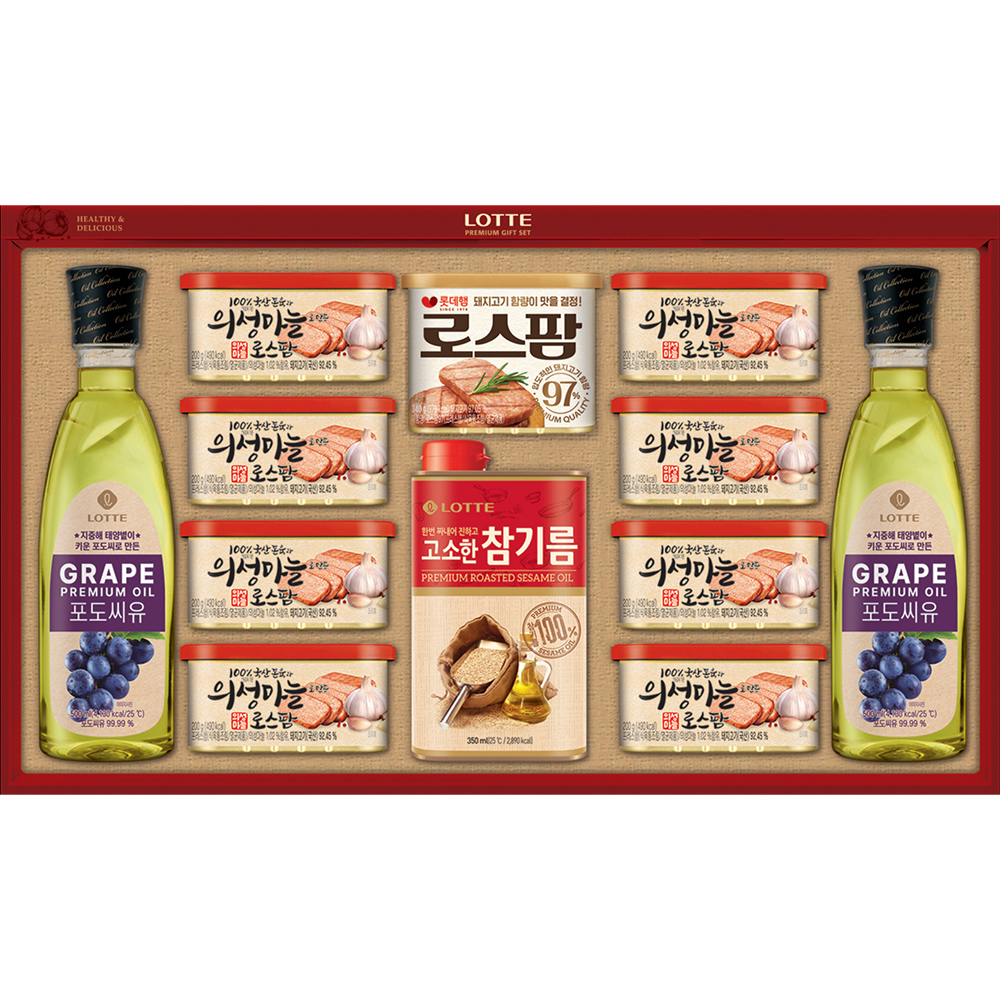 ▶ 구성 의성마늘 로스팜 200g x 8, 로스팜97 340g x 1, 포도씨유 500ml x 2, 고소한 참기름 350ml x 1 |