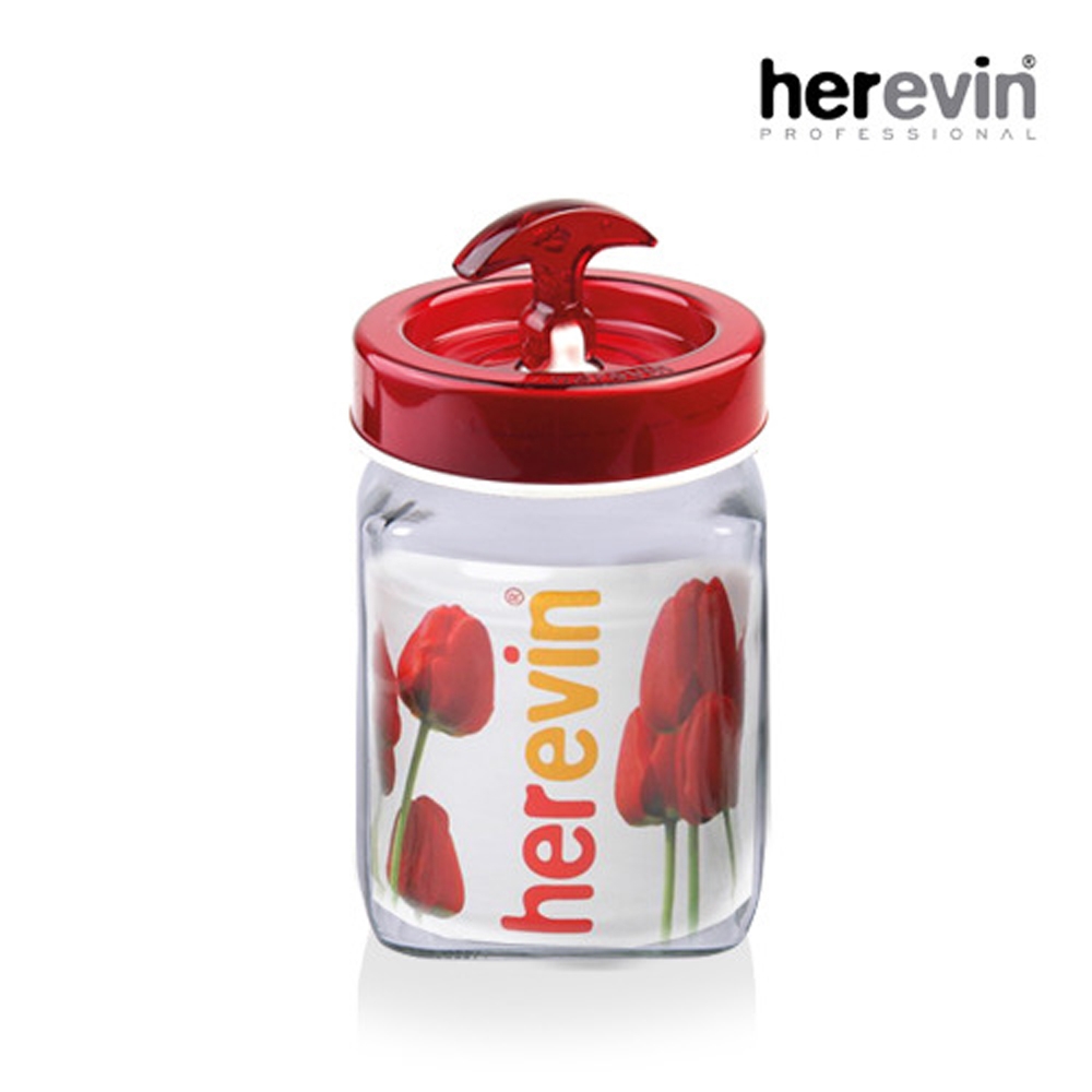 [튀르키예 헤르빈] 베가 핸들 정사각 유리 밀폐용기 2L (레드)